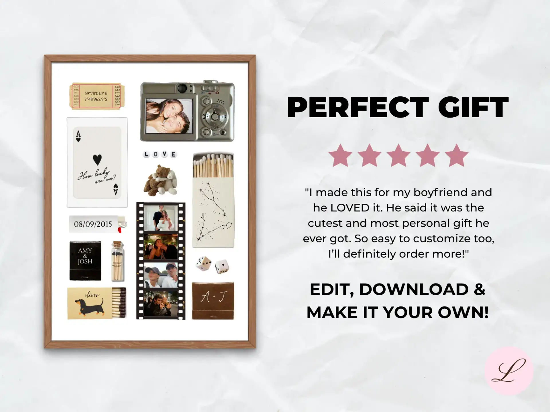 Designed for Canva, this editable printable lets you create a one-of-a-kind keepsake for your boyfriend, girlfriend, best friend or even yourself !