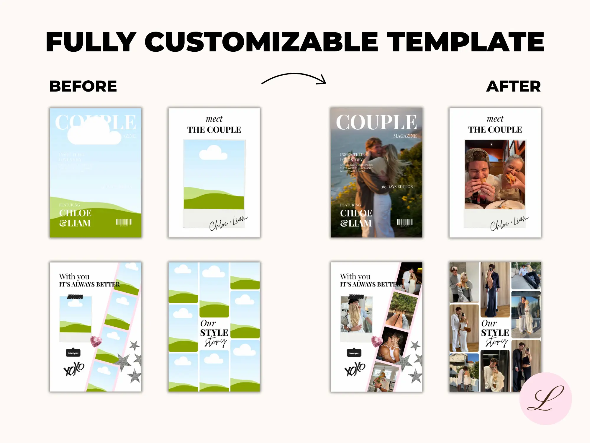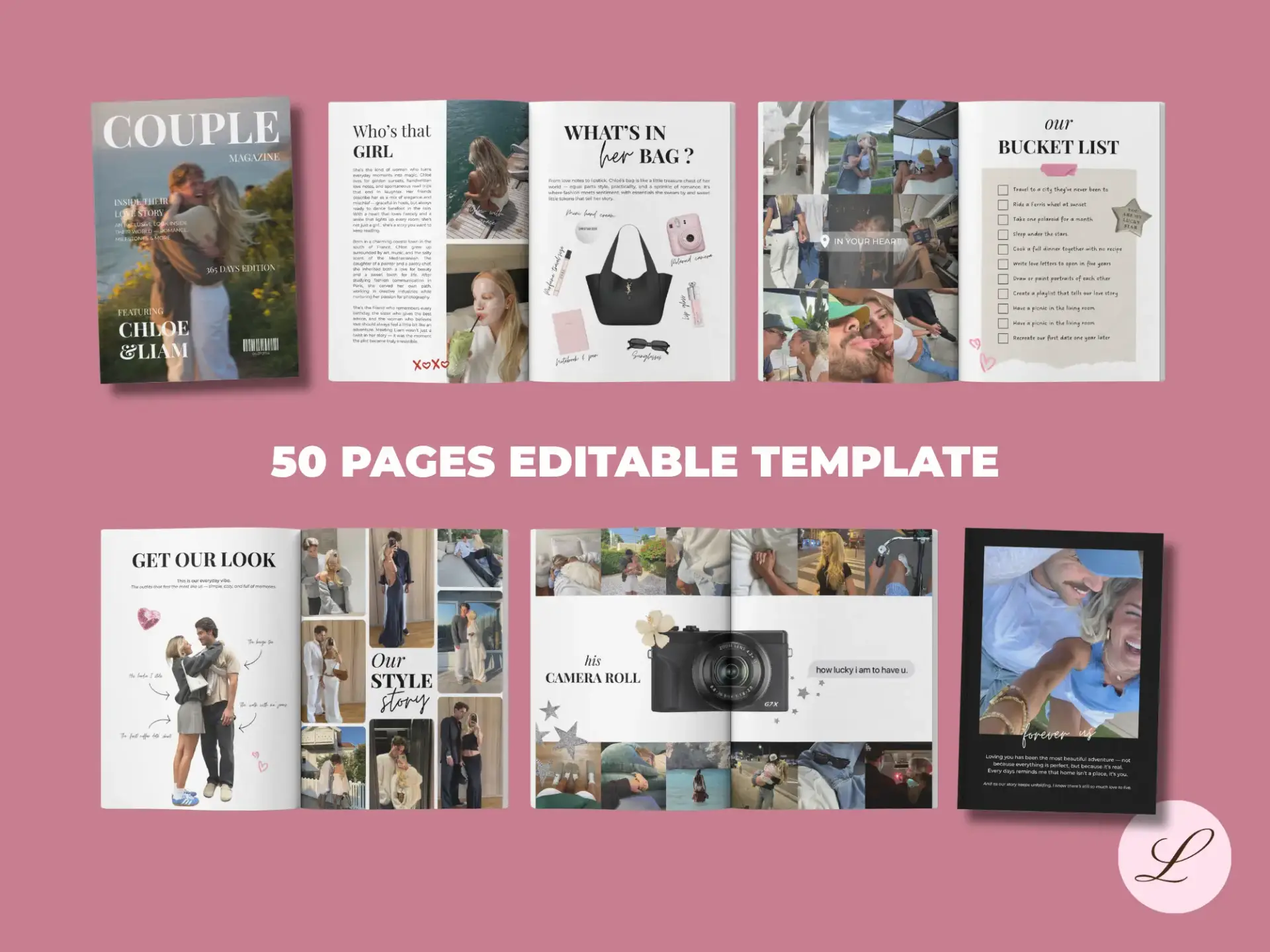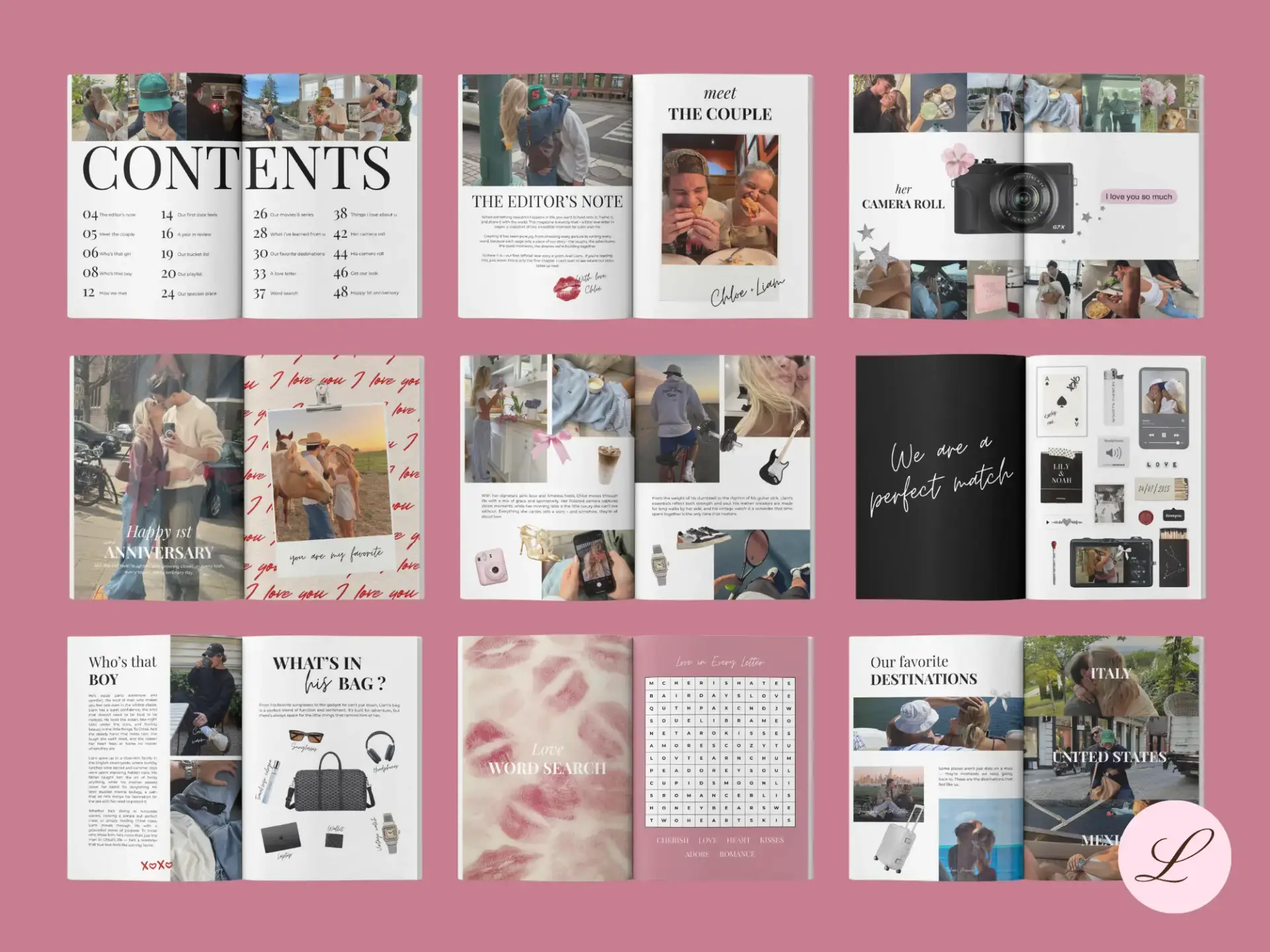 Designed for Canva, this editable printable makes it easy to create a professional-looking magazine for your boyfriend, girlfriend, fiancé(e), or even as a wedding keepsake.