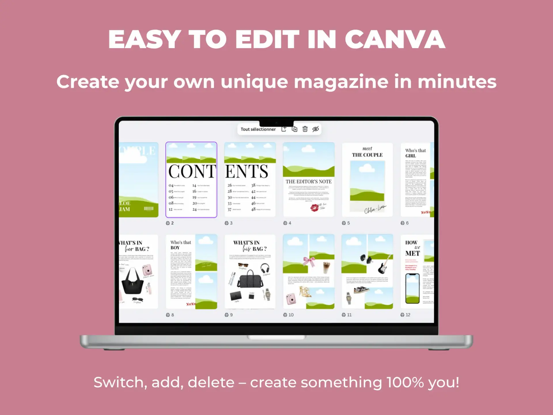 1 editable Canva link for the magazine template